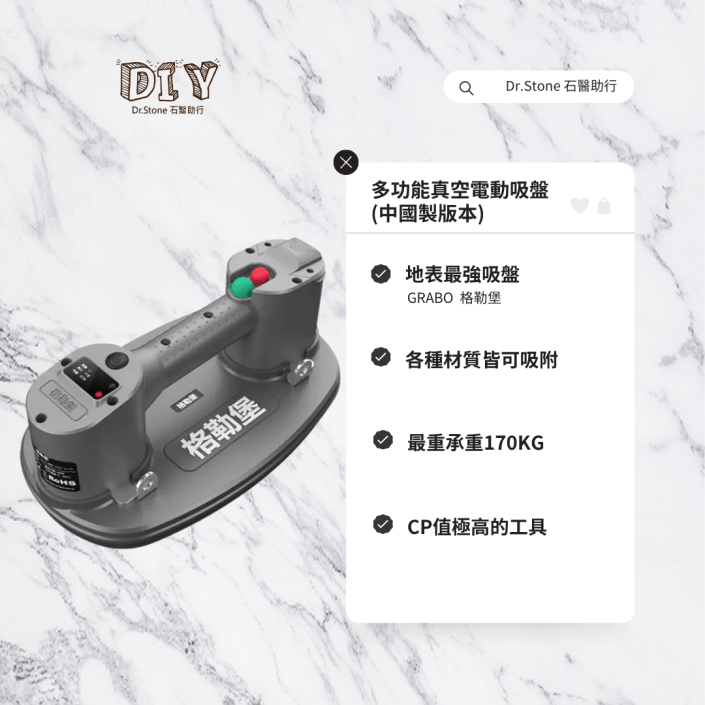 ☀︎美國GRABO電動真空吸盤,輕鬆安裝,提升工作安全,解決傳統吸盤只可用於平坦,清潔及密封表面的缺陷。